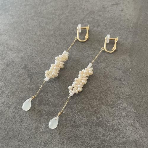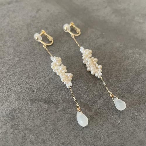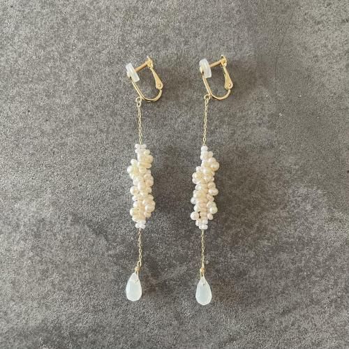 K10 淡水パール スパイラルイヤリングロング(ムーンストーン)